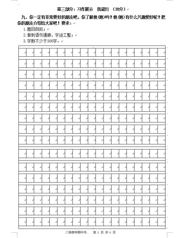 部編版三年級下冊語文期中檢測卷六(圖片版)(5)