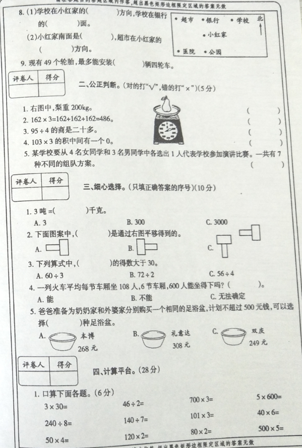 奧數 > 小學試題庫 > 期中試題 > 期中數學 > 三年級數學期中上冊 > 正文