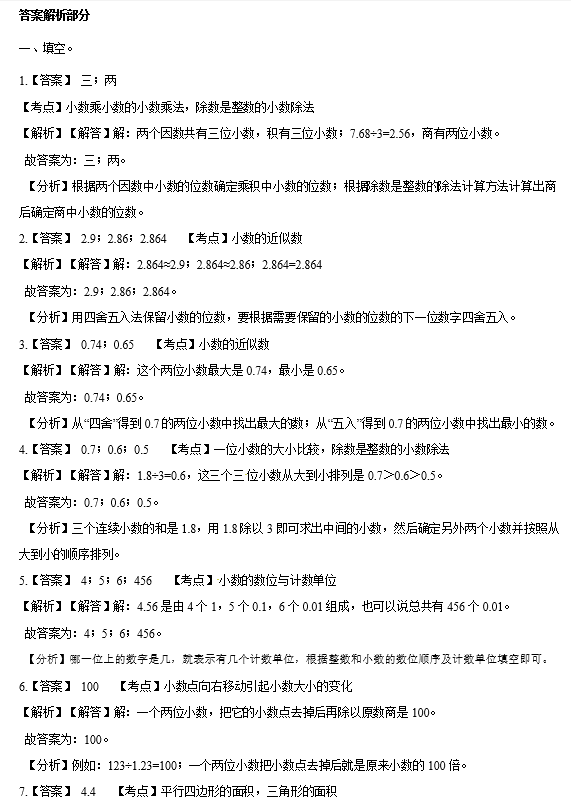 2020年人教版五年級上冊數學期中測試卷六(答案)