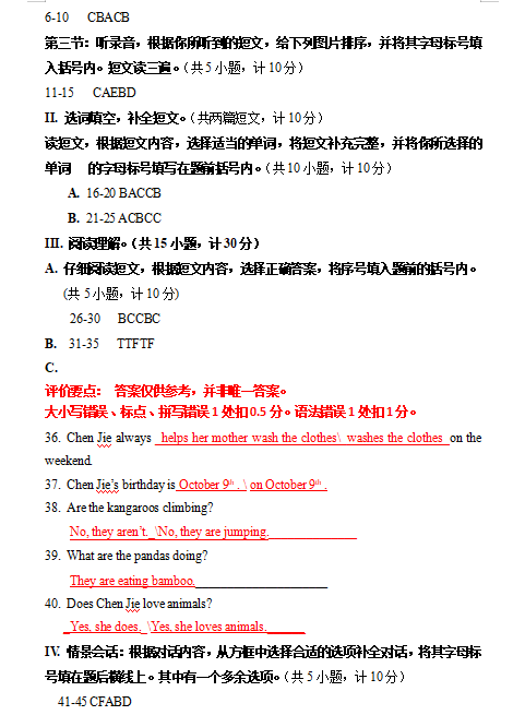 2020鄭州市高新區五年級下冊英語期末試卷(答案)(2)