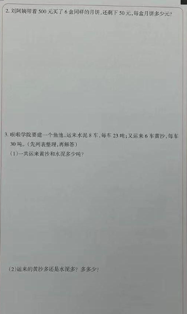 2022山西太原杏花嶺區四年級上冊數學期中試卷一(圖片版)(5)