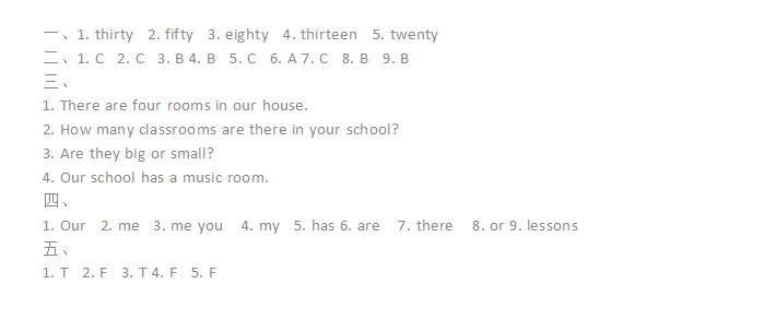 點擊查看:廣州版四年級英語上課課練及答案匯總