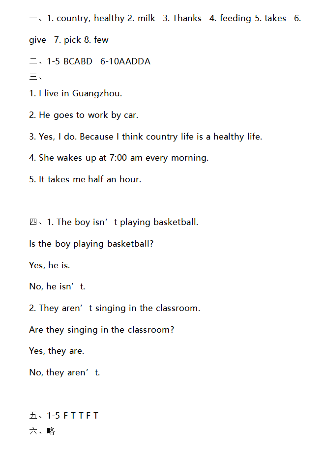點擊查看:廣州版六年級英語上課課練及答案匯總