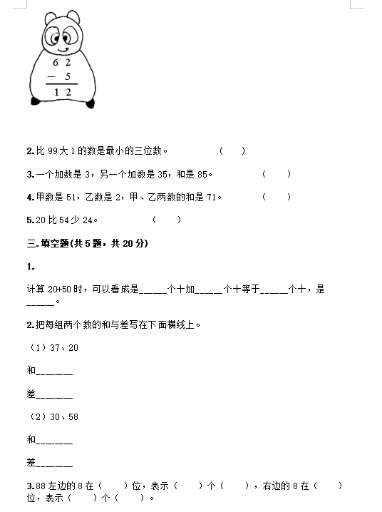 奧數(shù) > 小學(xué)試題庫 > 單元測試 > 數(shù)學(xué)單元測試 > 一年級數(shù)學(xué)單元測試下冊 > 正文