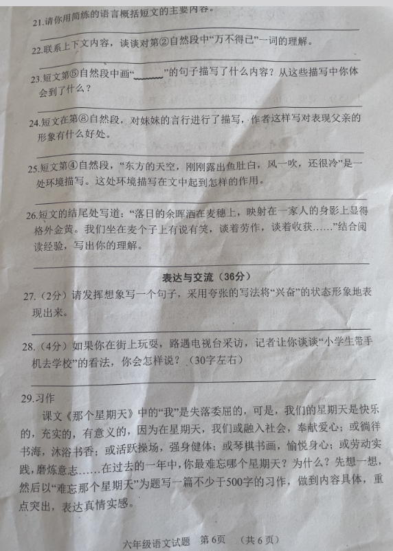 點(diǎn)擊查看更多:六年級(jí)語文下冊期末試題