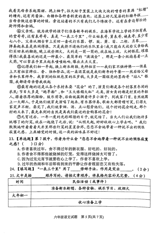 2023廣東江門鶴山市六年級下冊語文期末試卷(圖片版)(5)